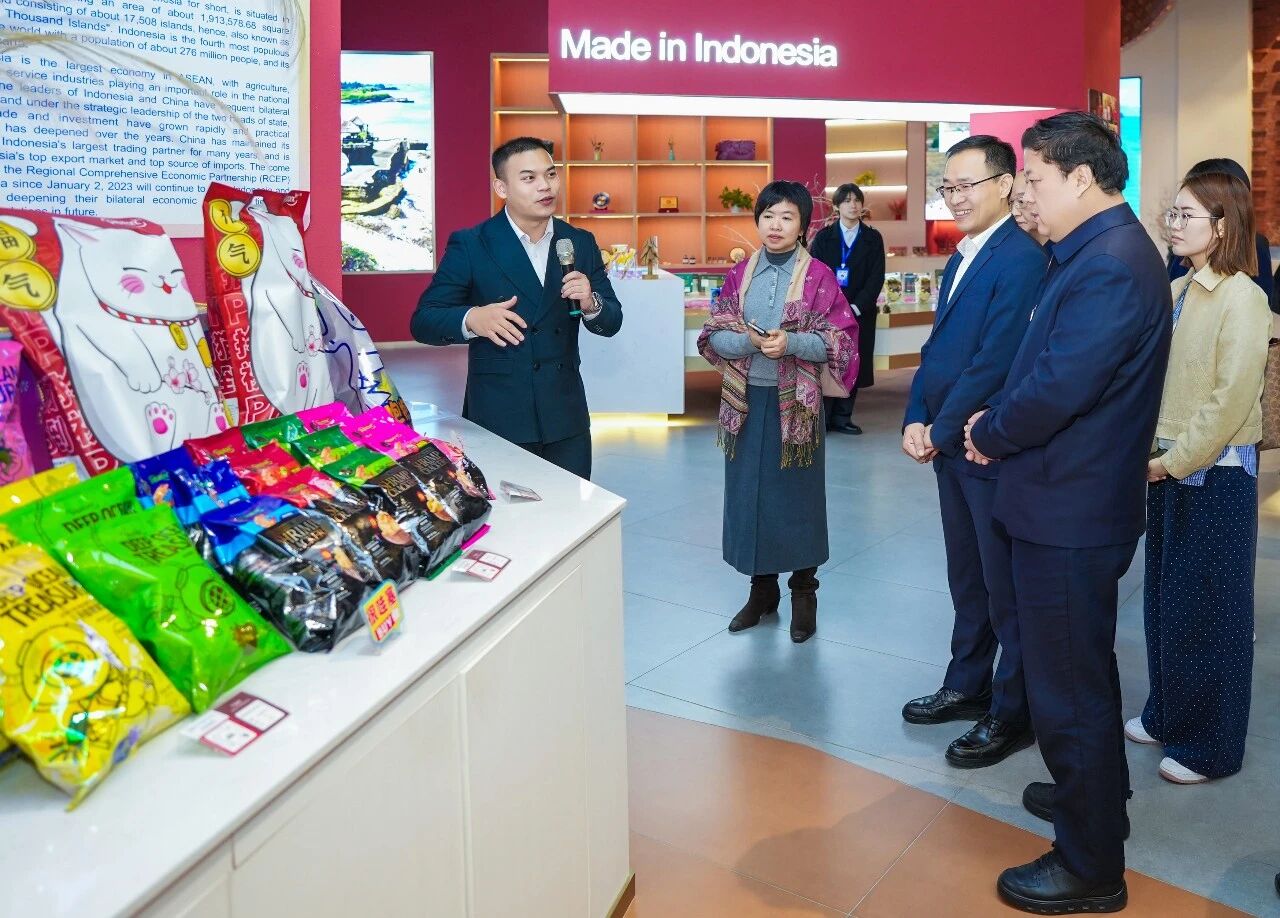 盧春梅副總經(jīng)理向調(diào)研團介紹,匯聚中心自2022年9月啟動以來,經(jīng)過三年多的發(fā)展,已將“365天永不落幕的中國—東盟博覽會”從愿景變?yōu)楝F(xiàn)實,持續(xù)釋放展會溢出帶動效應。在創(chuàng)新理念的引領下,越來越多以東盟為主的海內(nèi)外商家相繼入駐匯聚中心,平臺的特色商品也日益豐富,各類促進經(jīng)貿(mào)發(fā)展的活動也接連開展,呈現(xiàn)出持續(xù)活躍、多方共贏的發(fā)展態(tài)勢。她強調(diào),渭南市與廣西在產(chǎn)業(yè)及特色商品等方面具備較強的互補性,希望以此調(diào)研為契機,加深兩地的交流,推動包括渭南特產(chǎn)在內(nèi)的國內(nèi)更多優(yōu)質(zhì)商品,通過匯聚中心更順暢地進入東盟、走向世界,共享發(fā)展新機遇。
