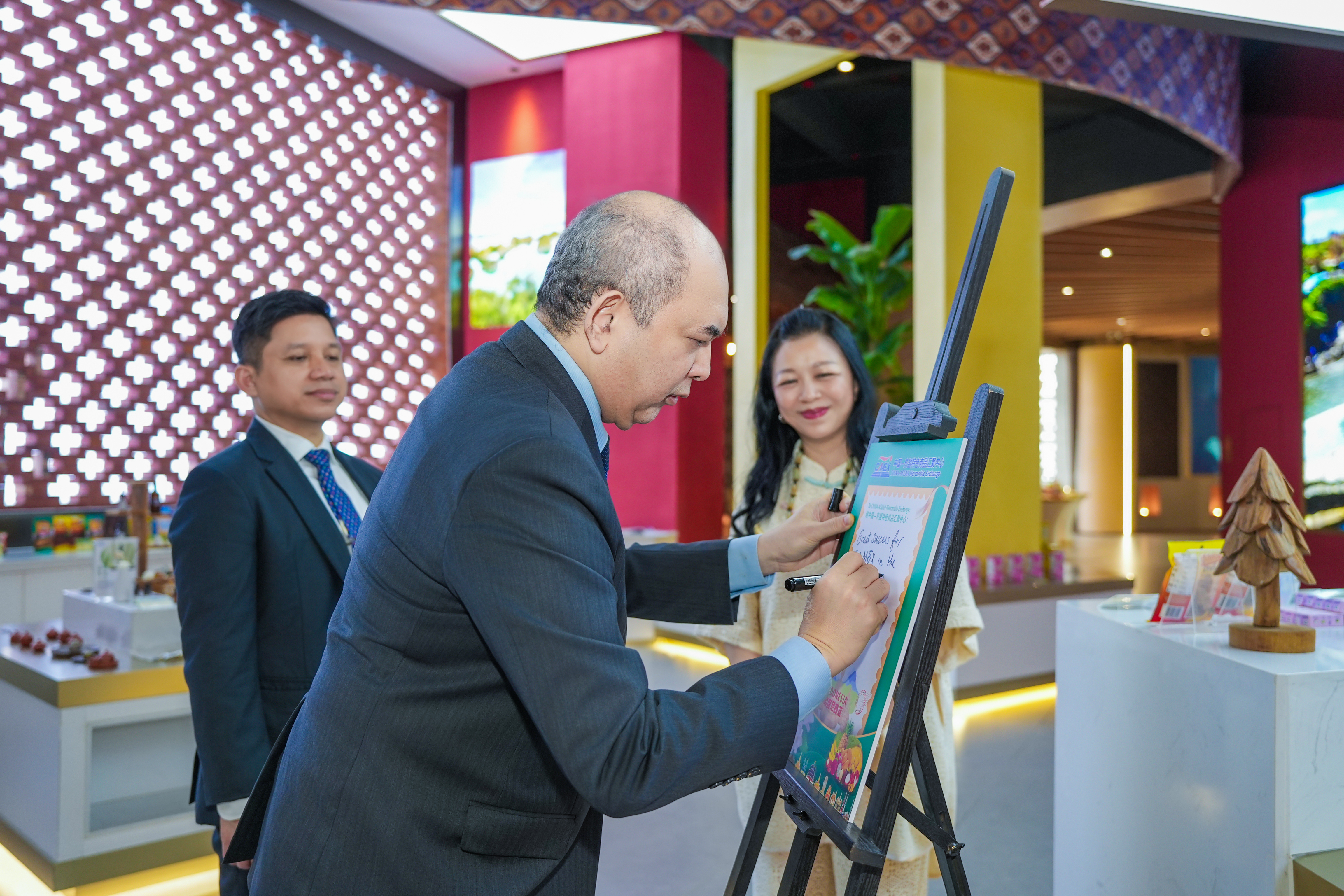 斌德加總領(lǐng)事在印尼館寫下了對匯聚中心的寄語,盛贊匯聚中心搭建的獨特商貿(mào)平臺,在助力構(gòu)建更緊密的印尼與中國友好關(guān)系上做出的貢獻(xiàn),也祝項目發(fā)展得越來越好,他表示將持續(xù)關(guān)注項目進(jìn)展,并愿為深化雙方合作提供更多支持。